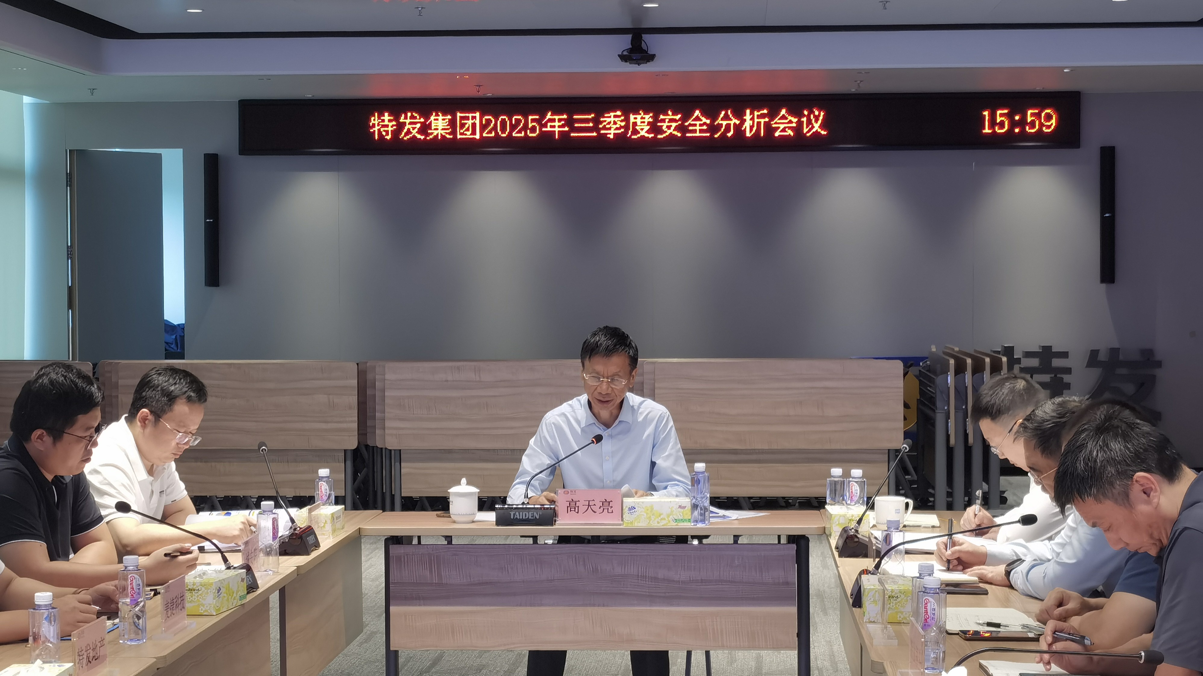 2025年9月25日下午,特發集團召開2025年第三季度安全分析會。集團總裁、安委會主任高天亮出席會議并講話,集團副總裁、安全總監李承主持會議。集團安委辦、各企業主要負責人、分管安全工作領導及安全管理部門負責人參會。會議復盤了前期安全工作的成效與不足,充分研判當前風險形勢,部署四季度重點防控任務,進一步壓緊壓實各級安全管理責任。