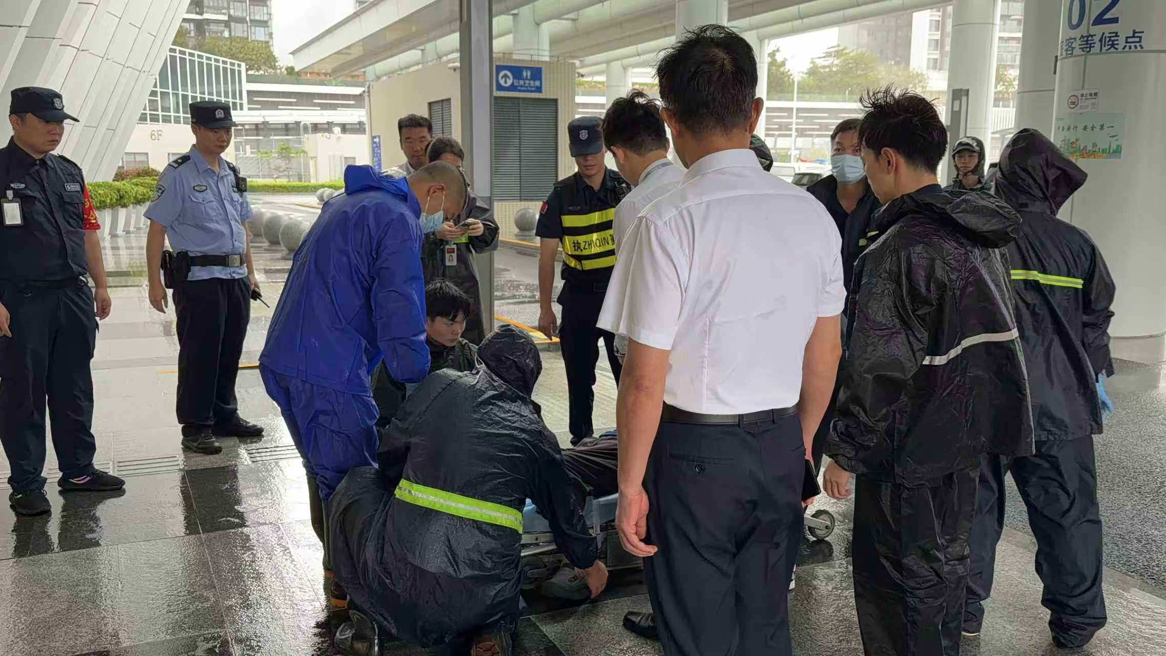 24日10時,特發服務下屬口岸公司在蓮塘口岸二樓入境大廳接到緊急求助,兩名旅客中一人因腰部摔傷,出現嘔吐、呼吸困難癥狀且需坐輪椅就醫。面對“五停”期間的交通困境,現場保安隊員第一時間呼叫增援并撥打120,3分鐘內值班崗、醫療協助崗等多崗位人員迅速到位,一邊穩定旅客情緒、詳細了解傷情以精準對接急救中心;等待期間為通關人員主動提供雨衣、飲用水和食品,在臺風呼嘯的窗外,用高效協作與暖心服務搭建起生命通道。