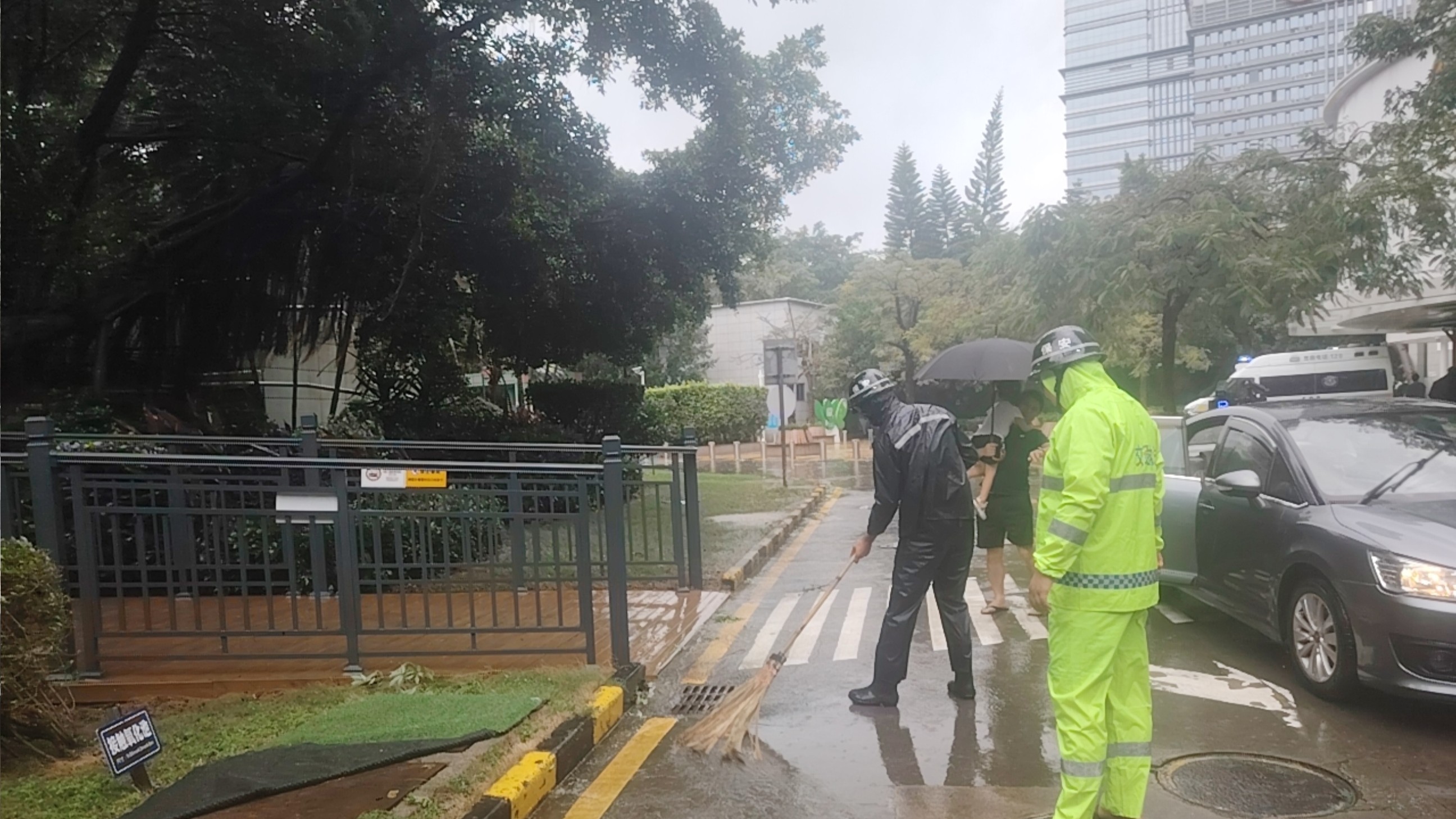 在深圳市兒童醫院,特發服務團隊針對重點防汛部位提前布置防汛沙袋等物資,對主要出入口設施進行加固,并對電力系統開展全面隱患排查,最大限度降低臺風可能帶來的影響。臺風過后,工作人員立即投入清理工作,重點疏通下水口,防止落葉堵塞造成路面積水,確保醫療服務環境安全有序。